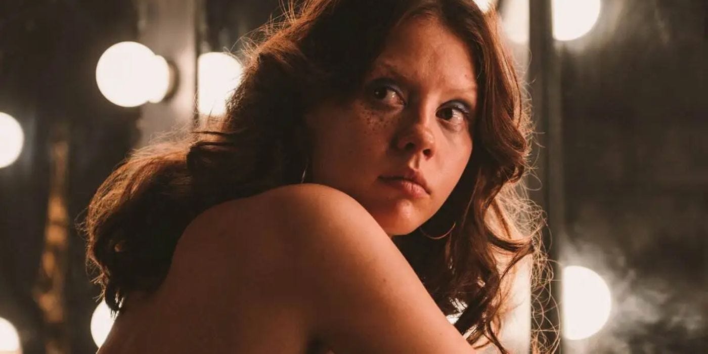 In Pearl, this concept is similar yet from a different lens. Pearl wants to be a line dancer and loses her audition to her sister-in-law. This happens because her sister is blonde - pretty in a traditionally “pure” way for the 1920s. She’s limited by her appearance no matter how desperately she wants freedom from the mundane, abstinent farm life she’s been forced into with her husband gone.